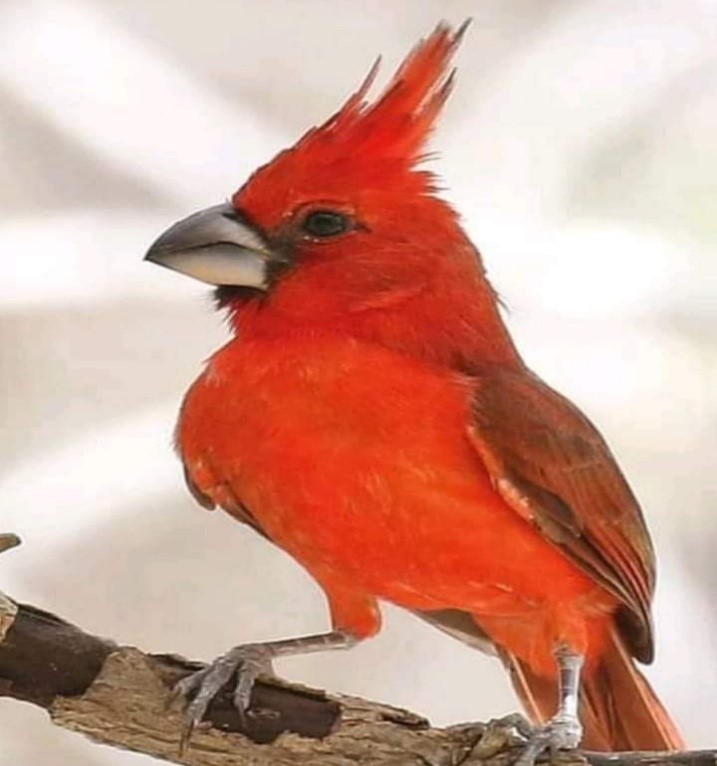 Por su rojo brillante, el espécimen que compré era un macho, las hembras eran de color rojo pálido, sus variados silbidos o cantos emitidos desde lo más alto de los árboles anunciaban la llegada de nuestro padre Juya para bendecirnos después del período de sequía,